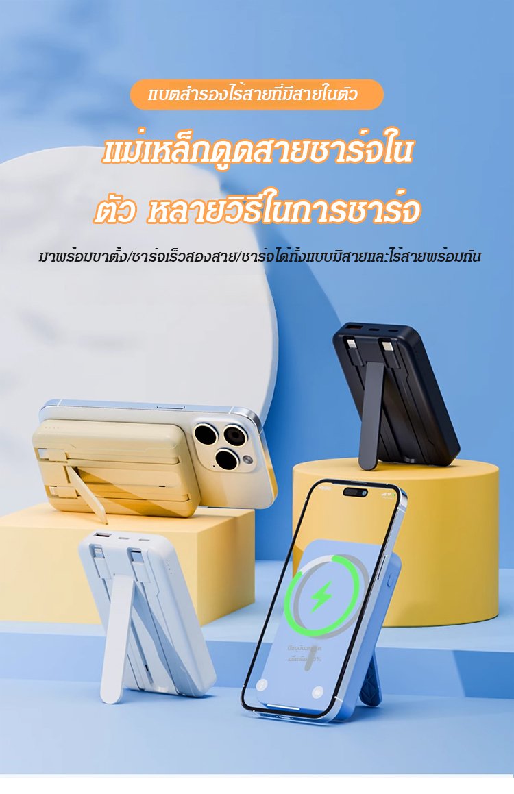 ที่ชาร์จไร้สายแบบแม่เหล็กพร้อมขาตั้งและสายชาร์จในตัว
